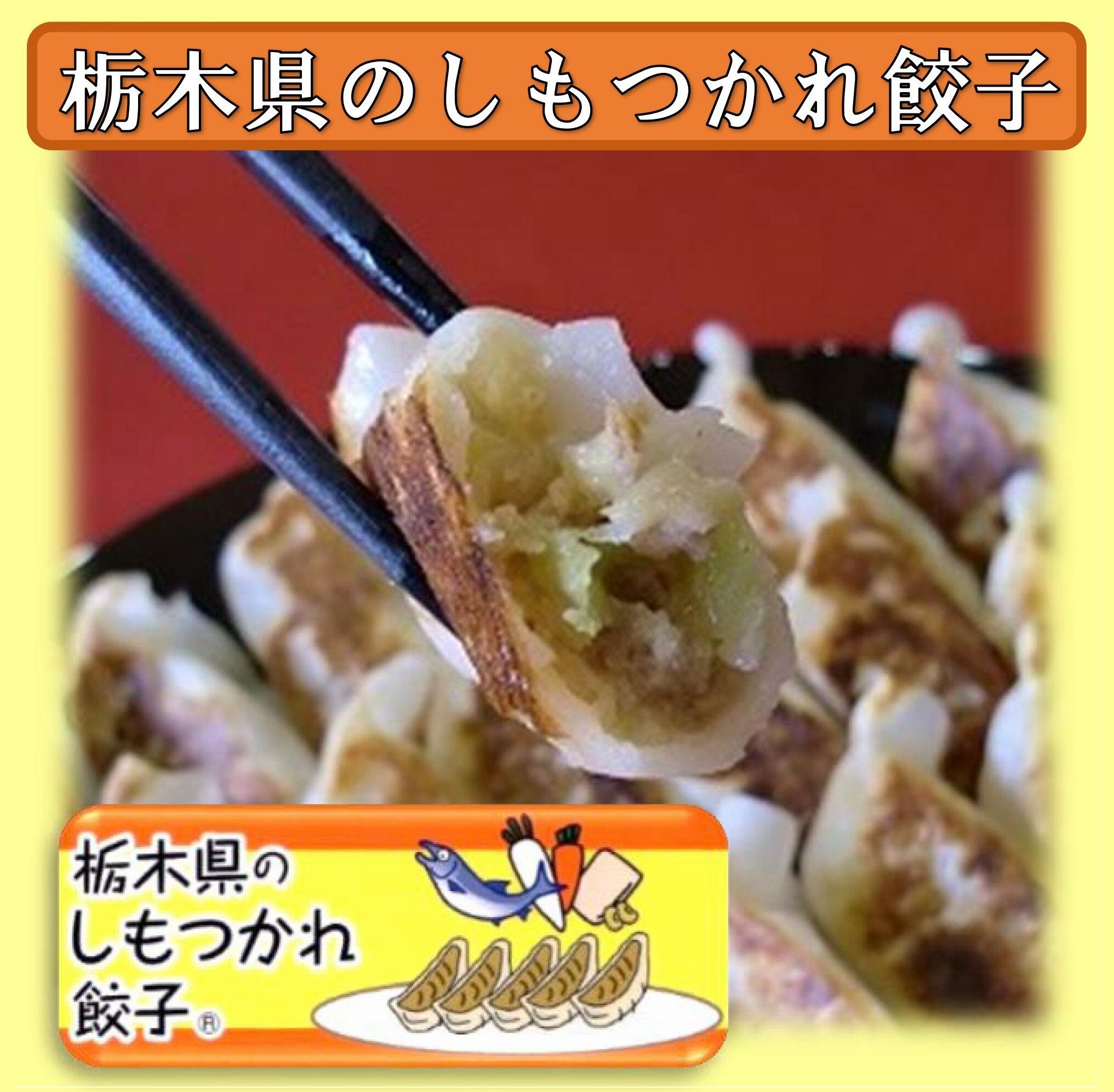 北関東を中心に江戸時代より親しまれてきた食べ物で、『日本の郷土料理百選』に選ばれた栃木の代表郷土料理です。名前の由来には下野(しもつけ)だけで作るからという説と、酢むつかり(炒った大豆に酢をかけた料理)からきたという説があります。材料のダイコンやニンジンには目の粗いおろし器を使い、野菜の風味を大きく残しています。ノーマルの餃子より甘みがあり、オススメです!